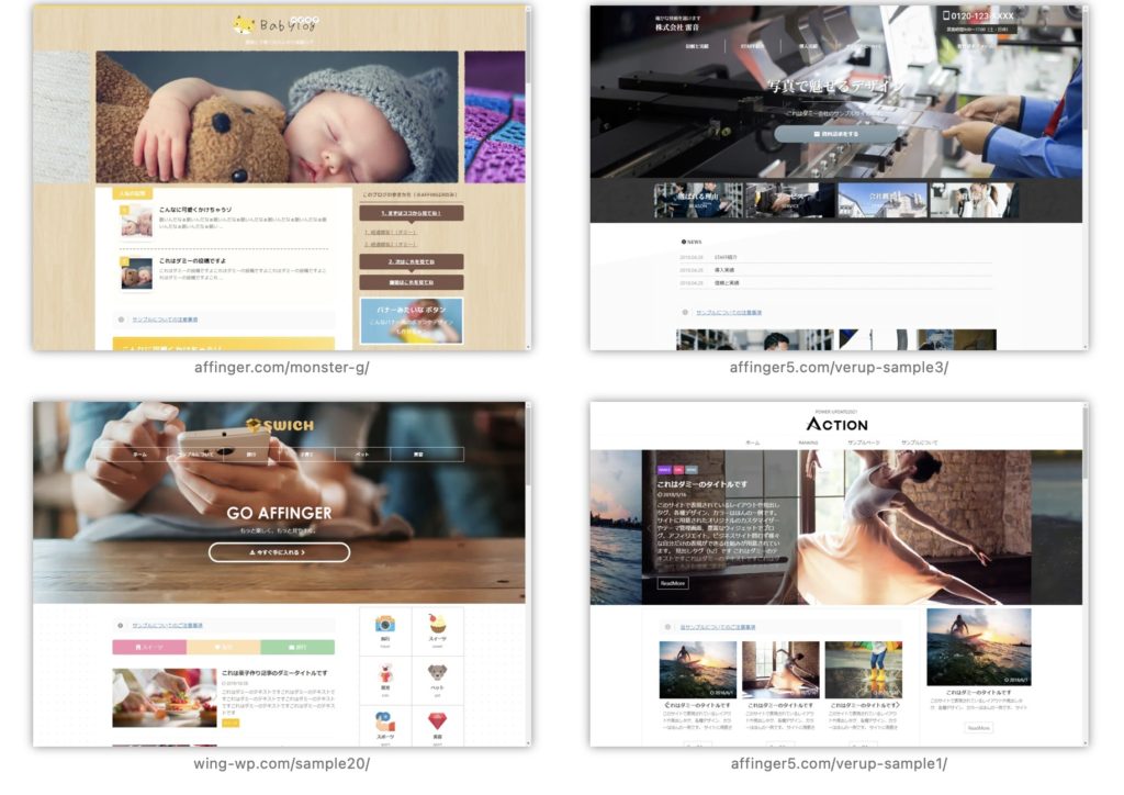 これは、AFFINGERの公式HPからの抜粋ですが、デザインの種類が豊富で自分の理想とするブログができます。