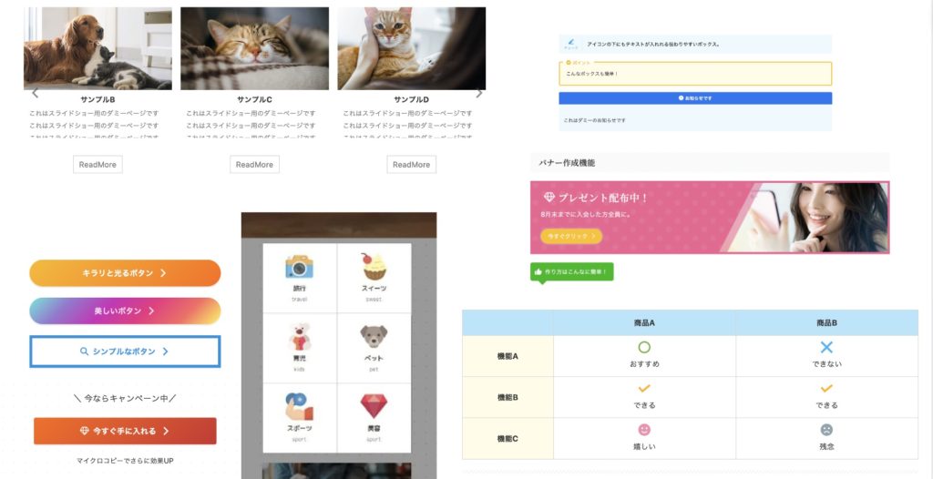 スライドショーやボタン、バナーなどオリジナル風に作成することができて、自分らしいブログを作成することができます。