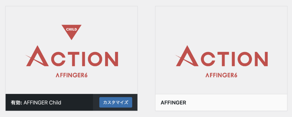 インストールが完了したら、「外観」⇨「テーマ」で「affinger-child」を有効化します。