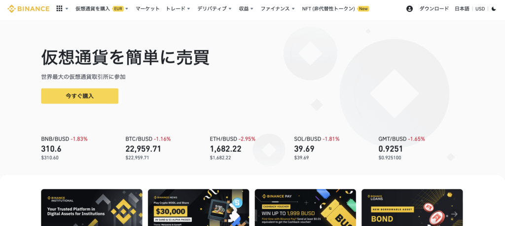 海外の取引所で一番有名なところと言ったら、バイナンス(BINANCE)取引所でしょう。
