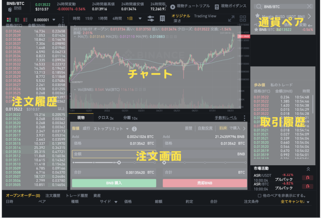 まずは、バイナンス取引画面の役割を覚えておく必要があります。