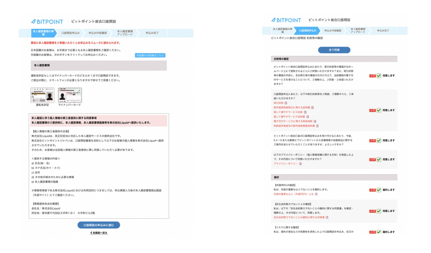 続いて、本人確認書類含む口座開設申込みを行います。流れとしては、