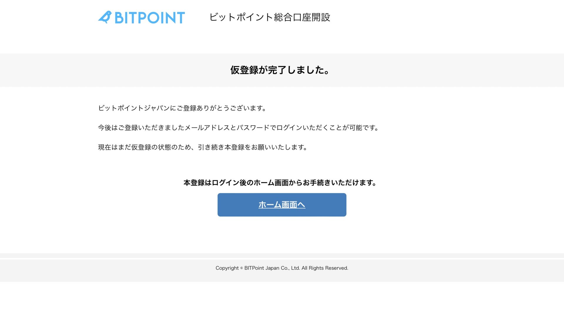 ここまでできたら、BITPOINTから連絡が来ますので確認ください。