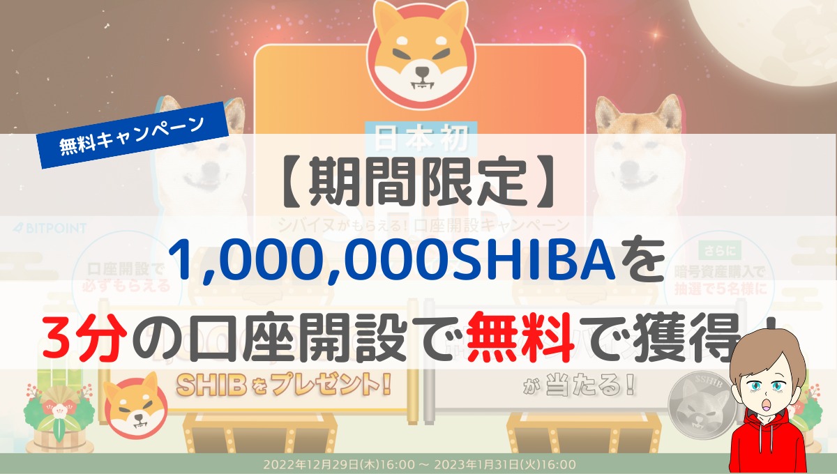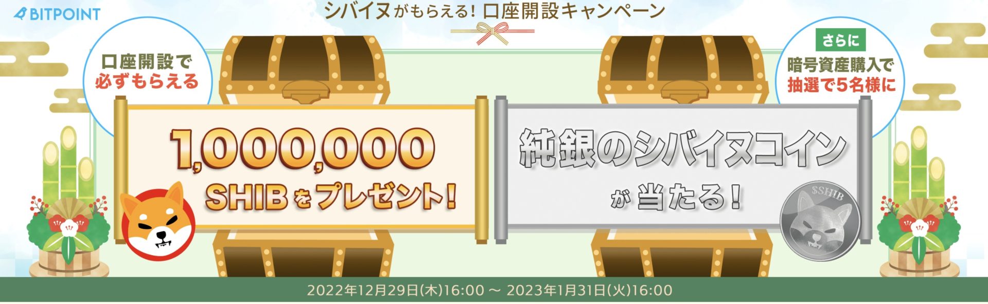 今、BITPOINT(ビットポイント)で口座開設をすると、1,000,000SHIBAを獲得することができます。