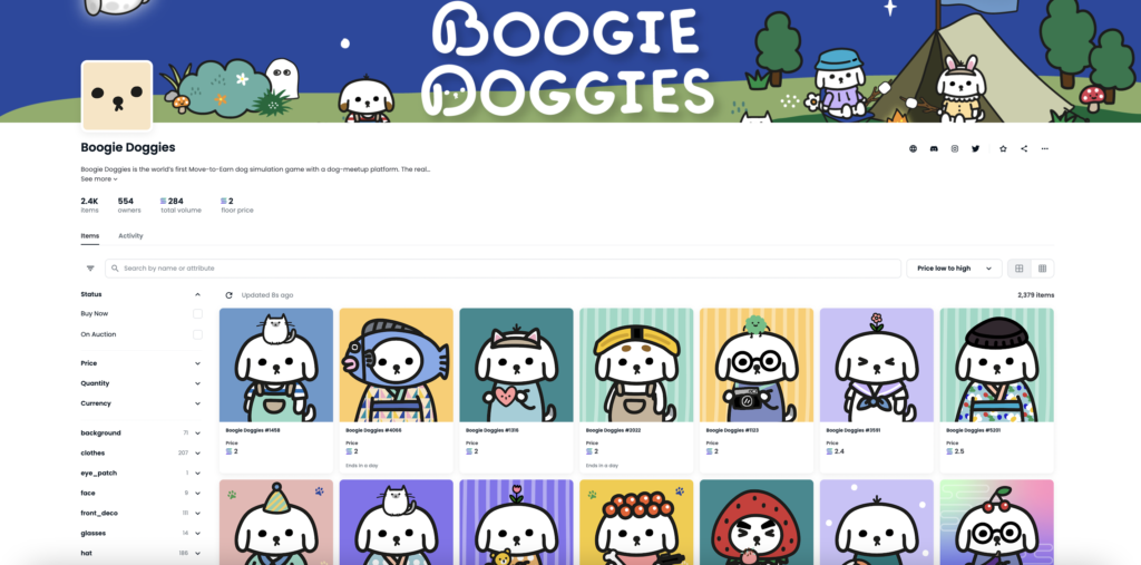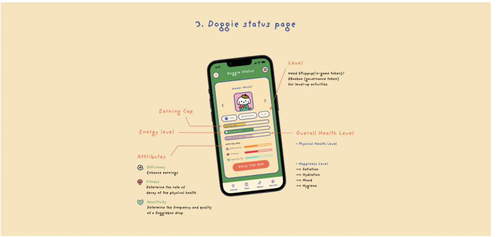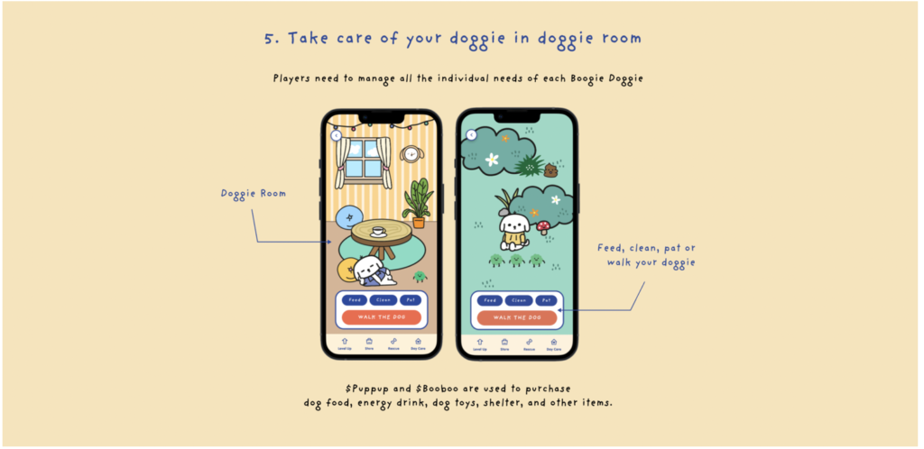 また、BoggieDoggiesは歩くだけでなく、NFTキャラクターのドギー犬のお世話をする必要もあるので、自分のNFTmキャラクターに愛着が湧くかもしれませんね。