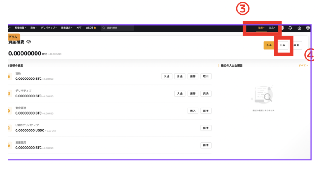 ④出金をクリック