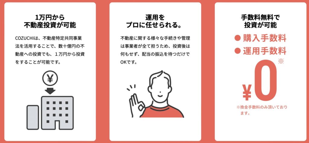 COZUCHIでは、初心者が安心して不動産投資ができる仕組みが様々あります。