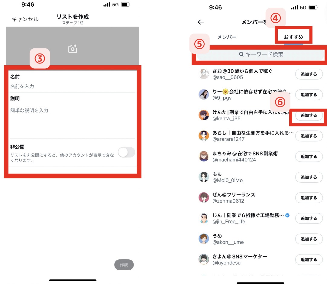次に、「勉強になるアカウント」「仲間になってほしいアカウント」のリストを作成します。