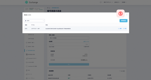 ②コインチェックのマイページから、「暗号資産の送金」をクリック