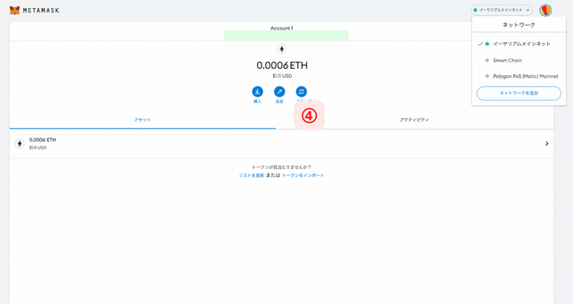 仮想通貨口座を開設し、メタマスクに仮想通貨を送れば、準備完了です。