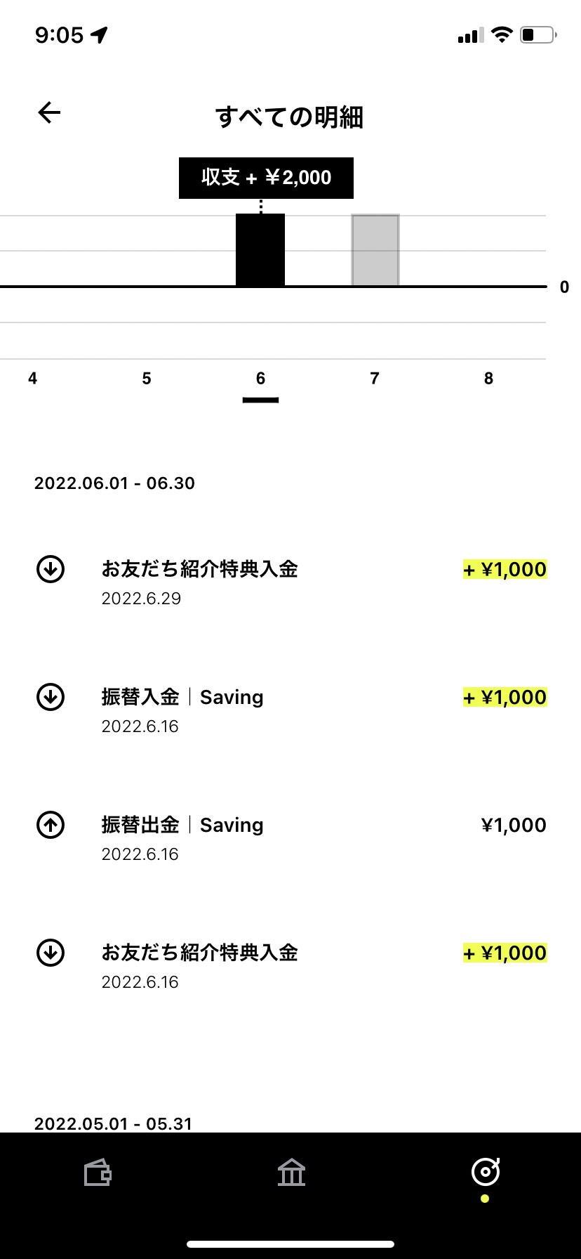みんなの銀行のキャンペーンでもらった1,000円は貯蓄口座に入っています。