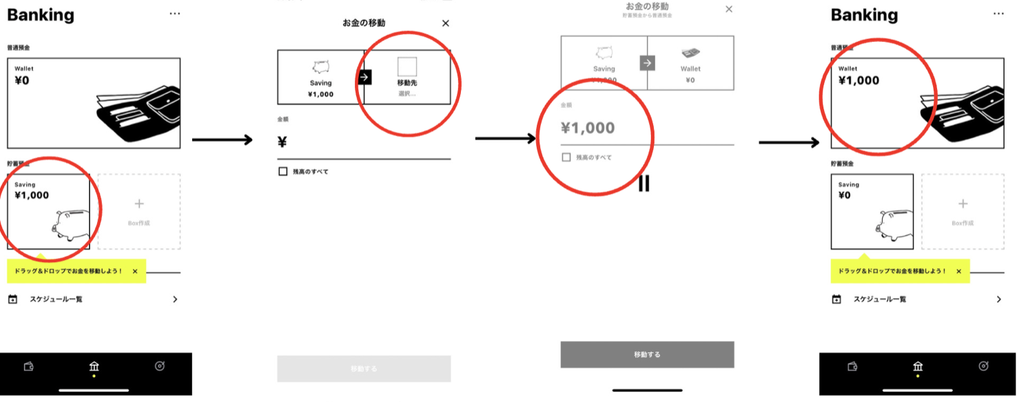 自分の口座に移動する方法