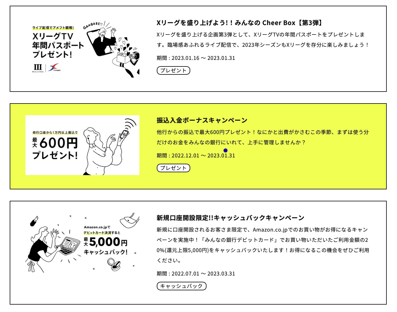 そのほか、みんなの銀行では様々なキャンペーンを行っています。