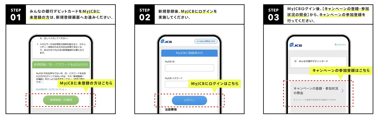 - MyJCBにログインして、キャンペーンに参加登録