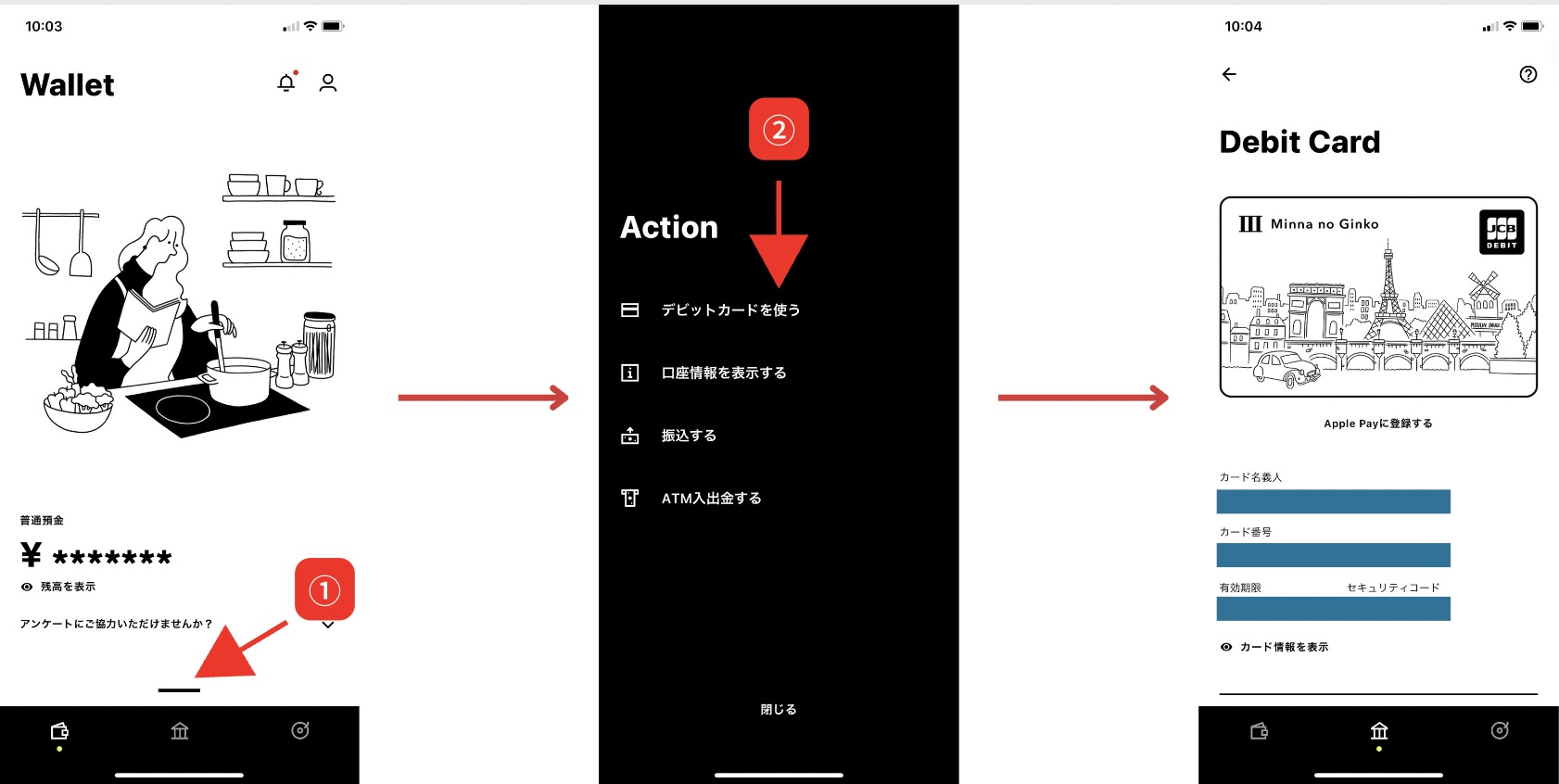 みんなの銀行のデビットカード確認方法
