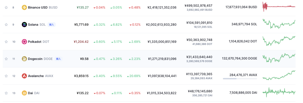 また、仮想通貨の時価総額ランキングでも上位に食い込んでおり、安心感があります。