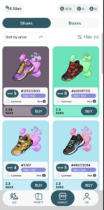 稼げるRUXは保有するNFTシューズのレベルとNFTシューズのレア度によって変わります。