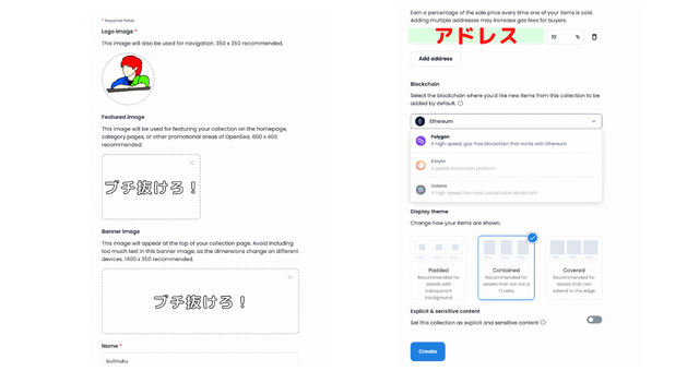 ブロックチェーンを「ポリゴン」にすることで、無料で出品が可能になります。