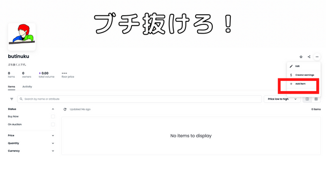 それでは、NFTアートを無料で出品する方法を図を用いて行いますね!