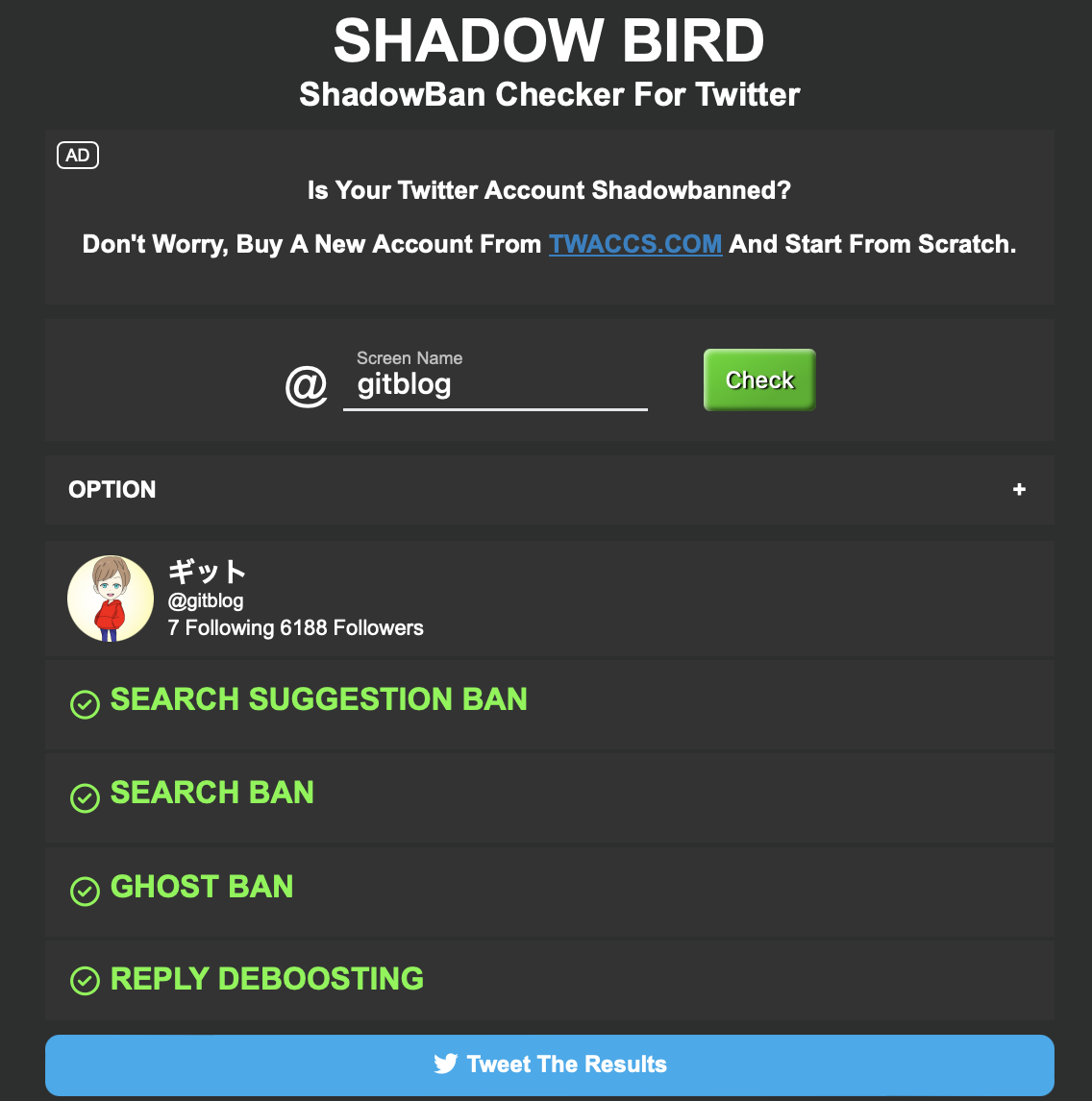 「Shadow Ban Checker」「ShadowBird」「Twitterシャドウバンテスト」