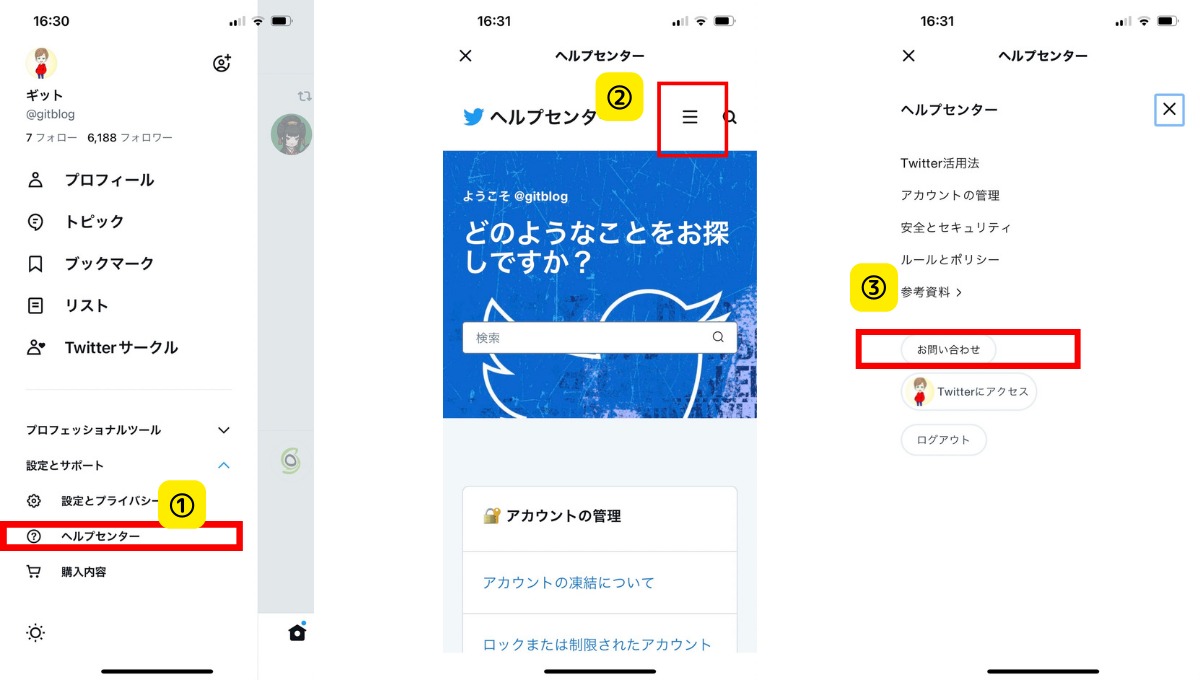 - Twitter社に連絡する