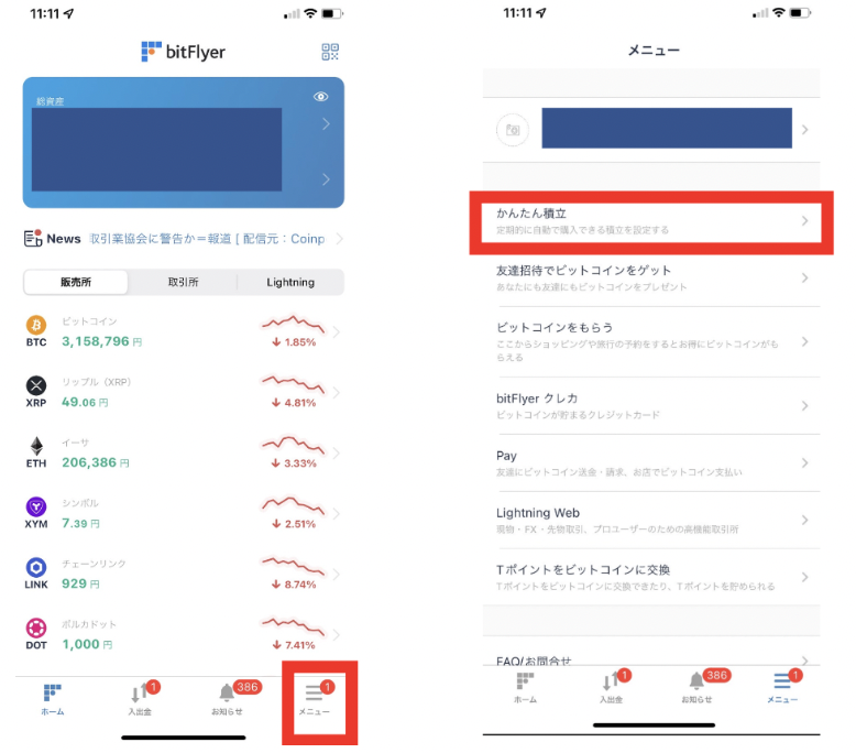bitFlyer(ビットフライヤー)のつみたて設定方法
